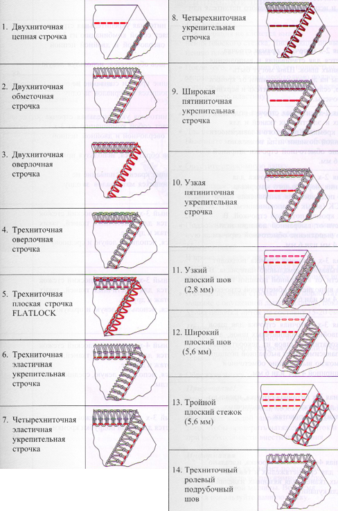 Швы выполняемые коверлоком MERRYLOCK Model 011: